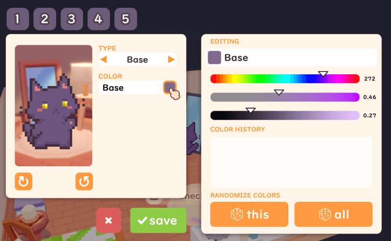 One thing I’d really like to do, is add accessories and different ear, tail, or patterns in the future. Maybe after 1.0…