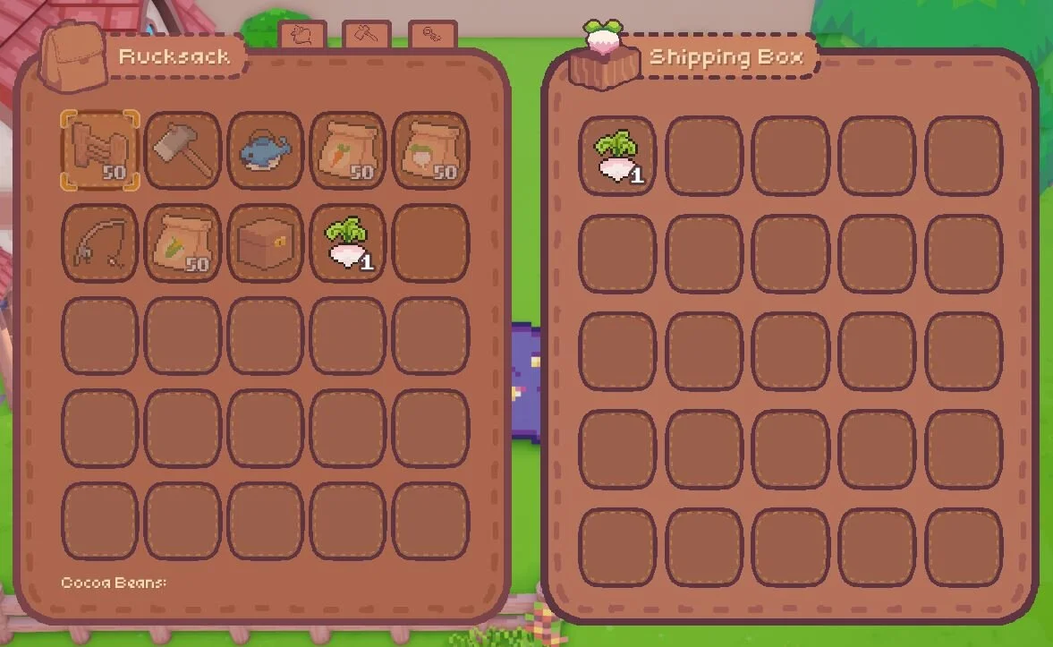 Mikan comes along your farm every morning to collect what’s in your shipping box. Depending on how much you’ve shipped, or if you’ve shipped any at all, her dialogue changes to reflect that. One of the biggest points in a farming sim for me has always been characters and their dialogue – we’re really hoping to have a nice variety of daily dialogue for NPCs to say to keep it fresh!