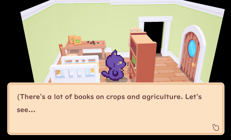 What does tying everything together mean? So far, Snacko has a staggering amount of stuff. Furniture you can place, objects you can dye, NPCs you can talk to, seeds you can plant…all of it is working, but they all work in sort of a sandbox type way.