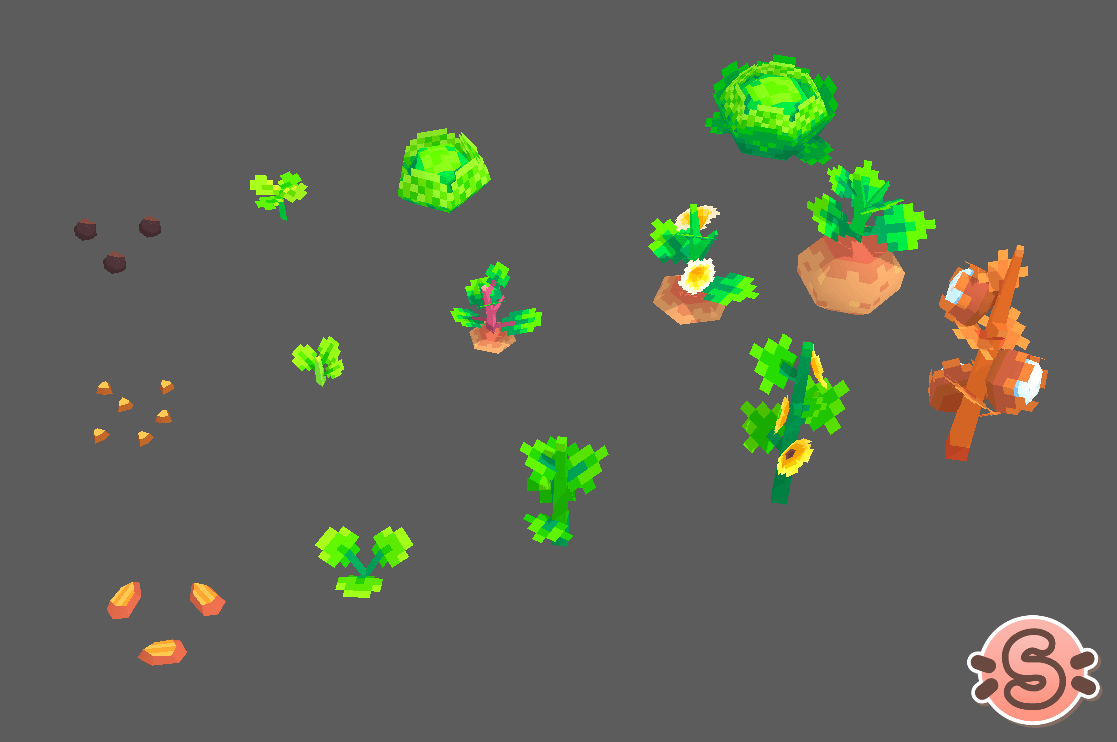 But there can’t be food without ingredients! The majority of the existing crops were converted to Snacko’s current art style a while ago, but there were still some missing assets.