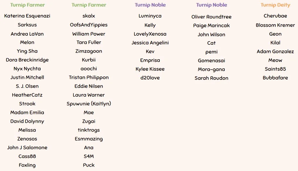 Extra thank you to our Patrons and Ko-fi supporters! Without you, Snacko development would look very different. We appreciate every one of you 🐾