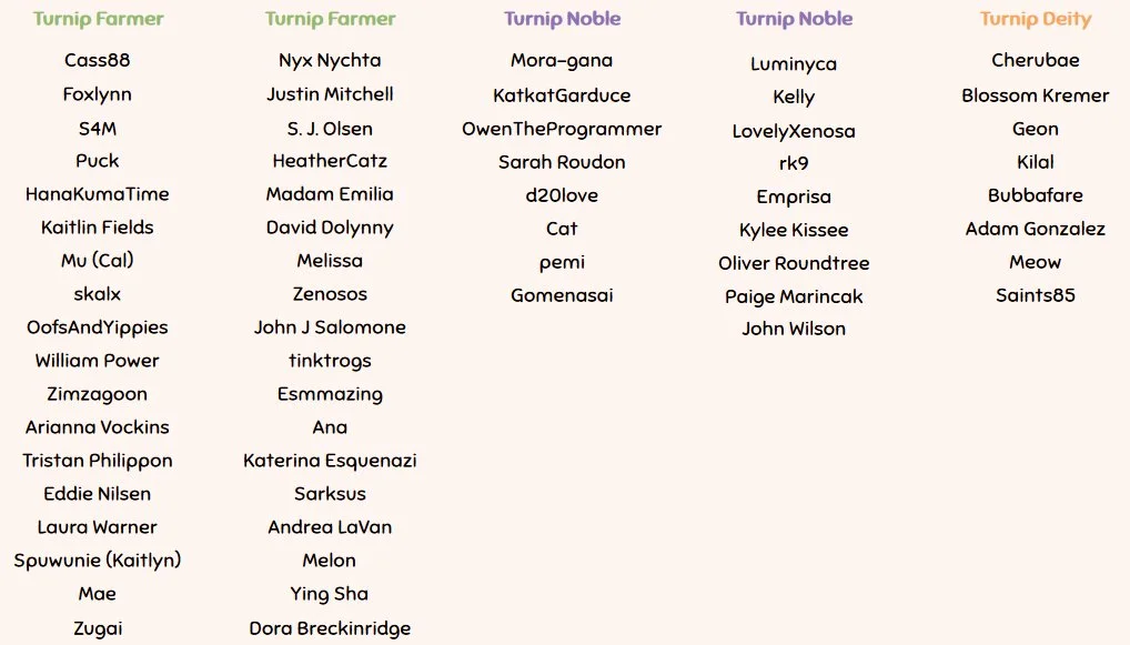 Extra thank you to our Patrons and Ko-fi supporters! Without you, Snacko development would look very different. We appreciate every one of you 🐾