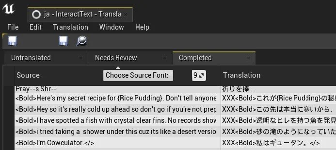 I went into a mild panic because that means something went wrong in the export process of all the text, and with how many words the game has (over 100k!) it was a lot to…do.