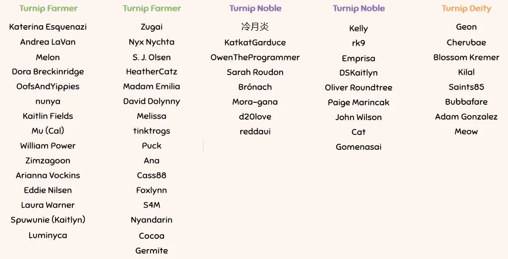 Extra thank you to our Patrons and Ko-fi supporters! Without you, Snacko development would look very different. We appreciate every one of you 🐾