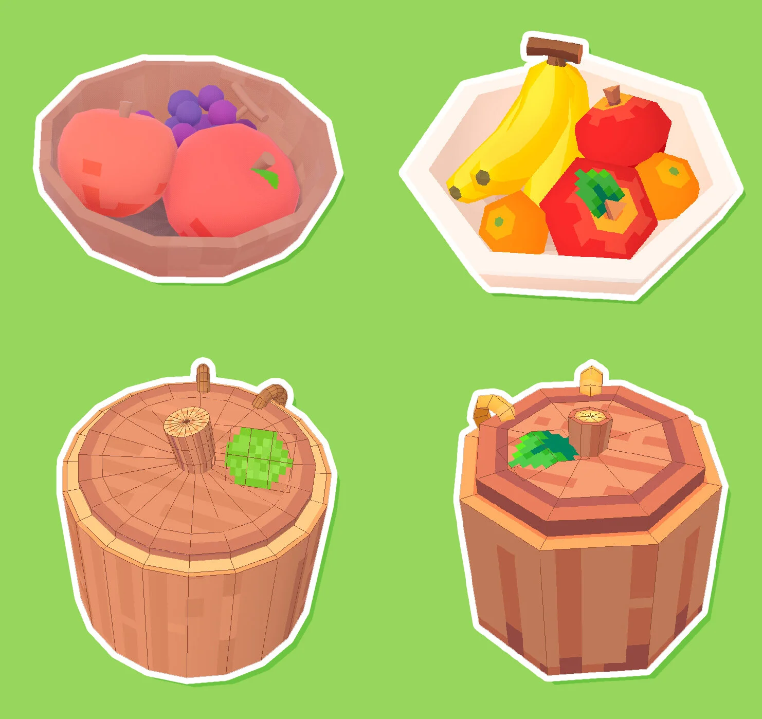 We also have a new bowl of fruit - five times less the polygons, now with bananas! You can also dye to change the color of the bowl now. The storage container also went on a polygon diet. We think everyone looks much brighter and happier now!