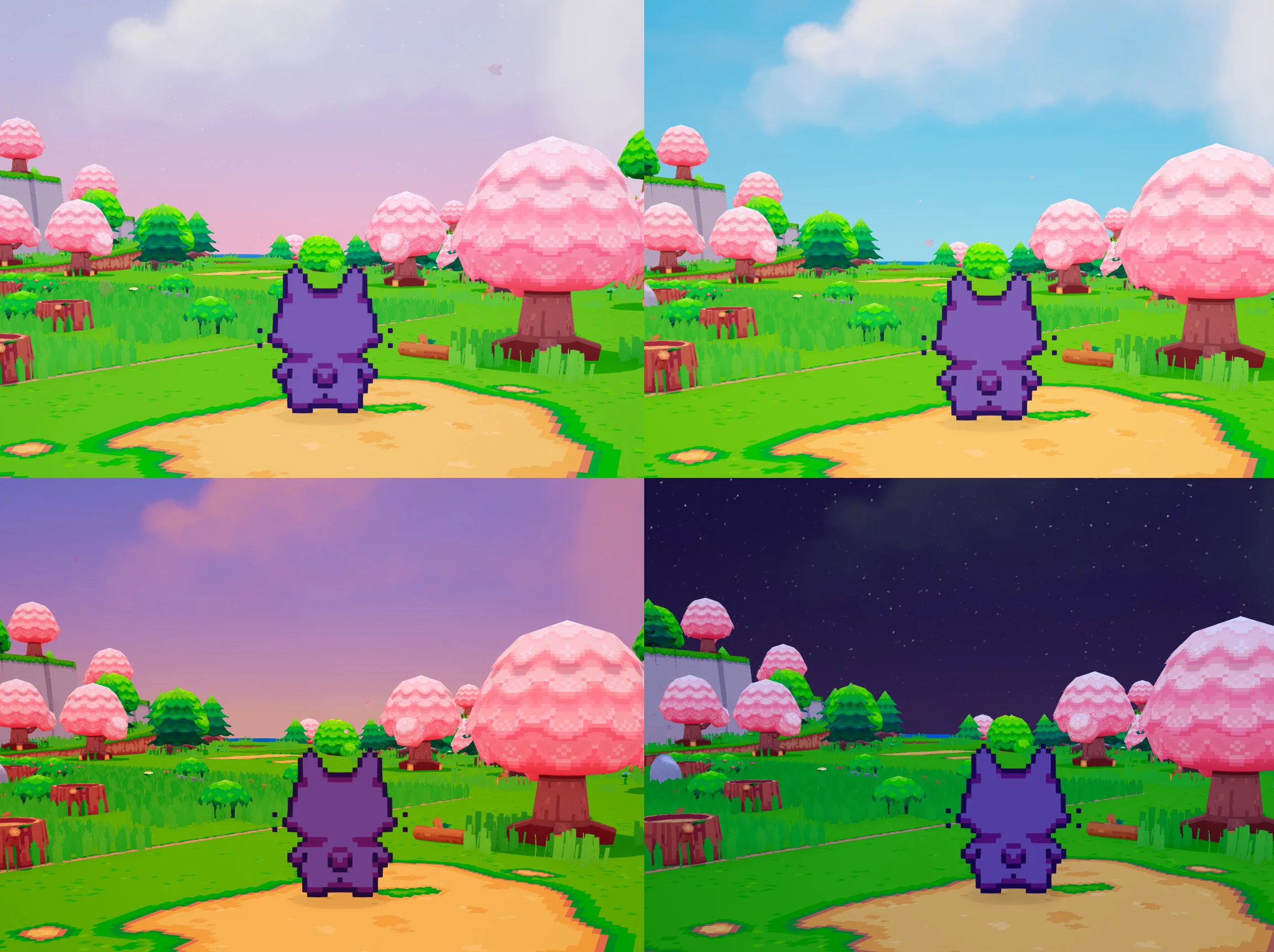 We added wind! Well, there was always wind in the farm grass, but nothing else. So it was a little weird. Now there’s wind on the crops as well, to make it feel more alive. We also moved the data controlling the wind into a little collection so we can control it globally at runtime. This means we can do cool stuff like make it windy on rainy days.